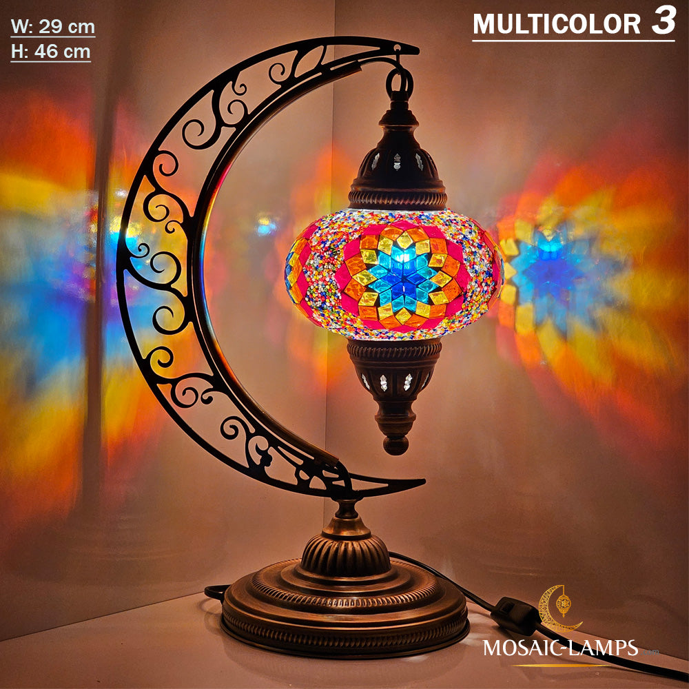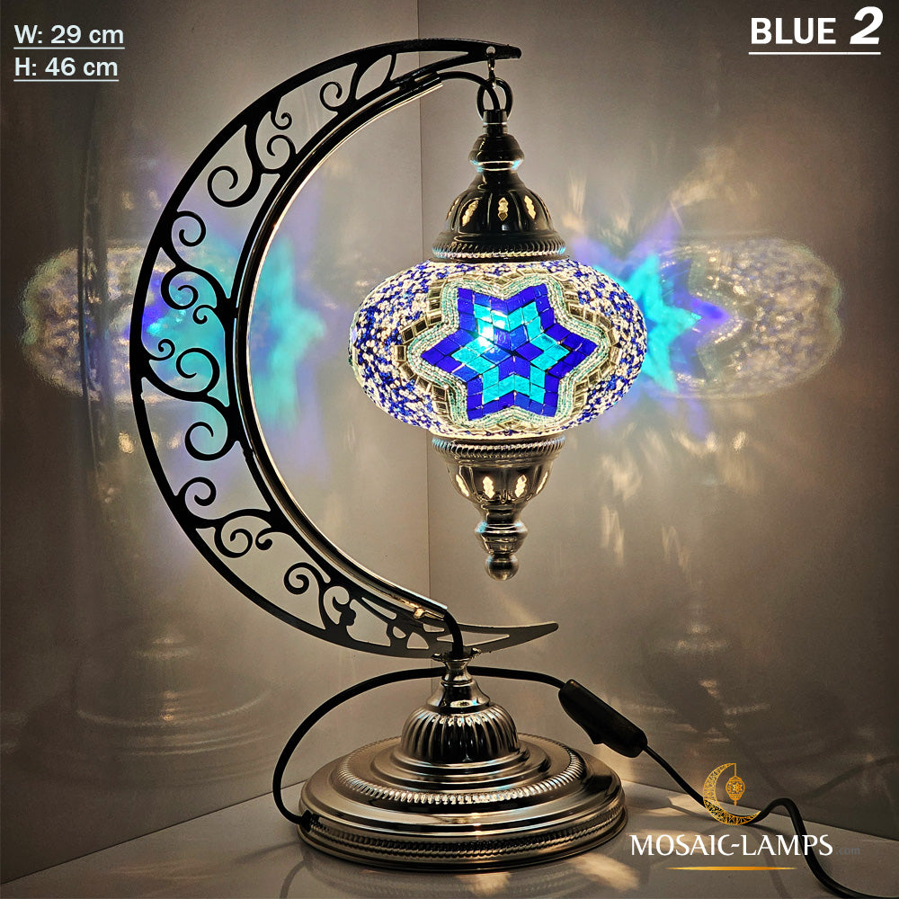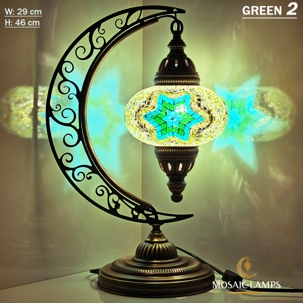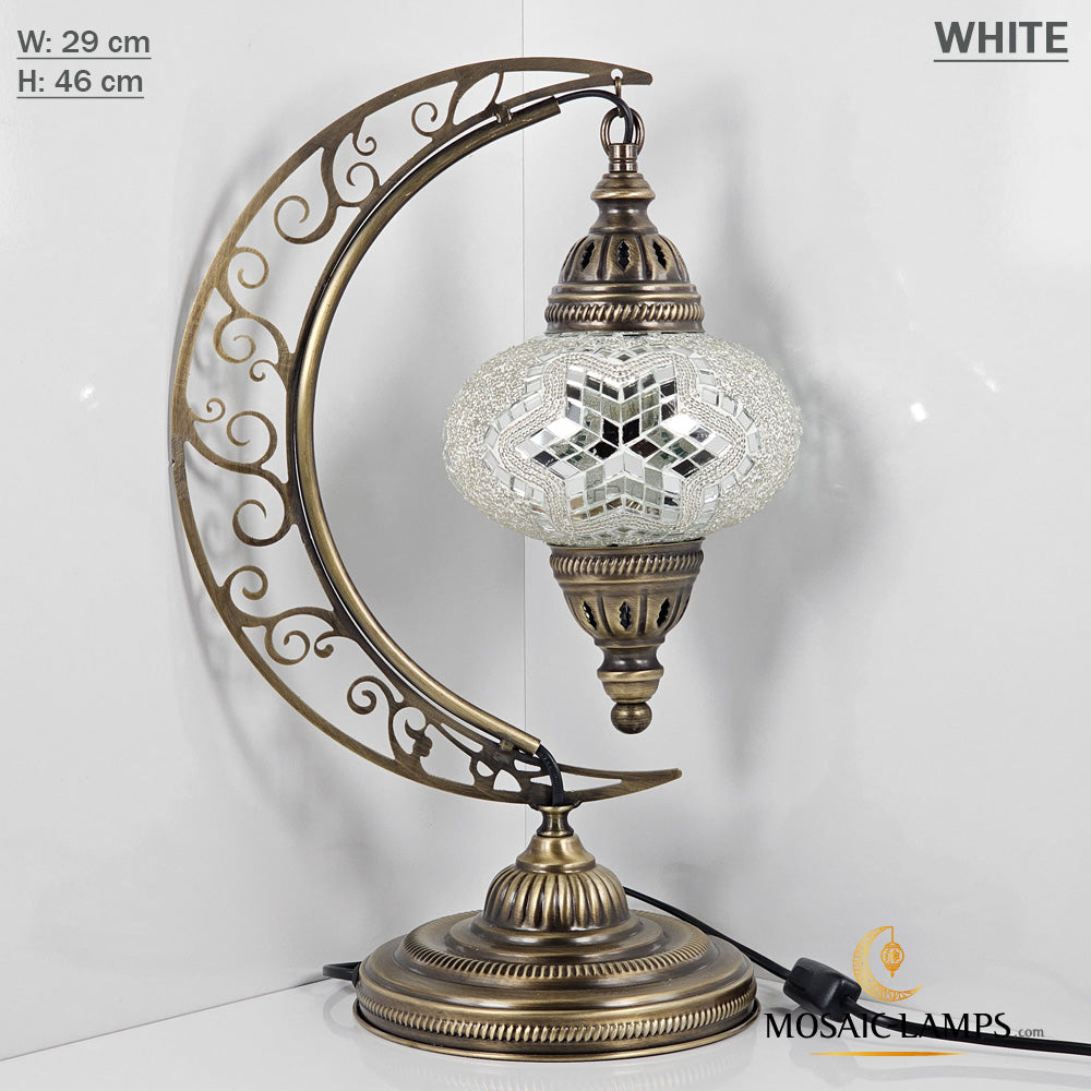 Moroccan moon table lamp, arc, murano crescent desk lights, hilal Turkish mosaic, bedroom, restaurant, living room, kids room.